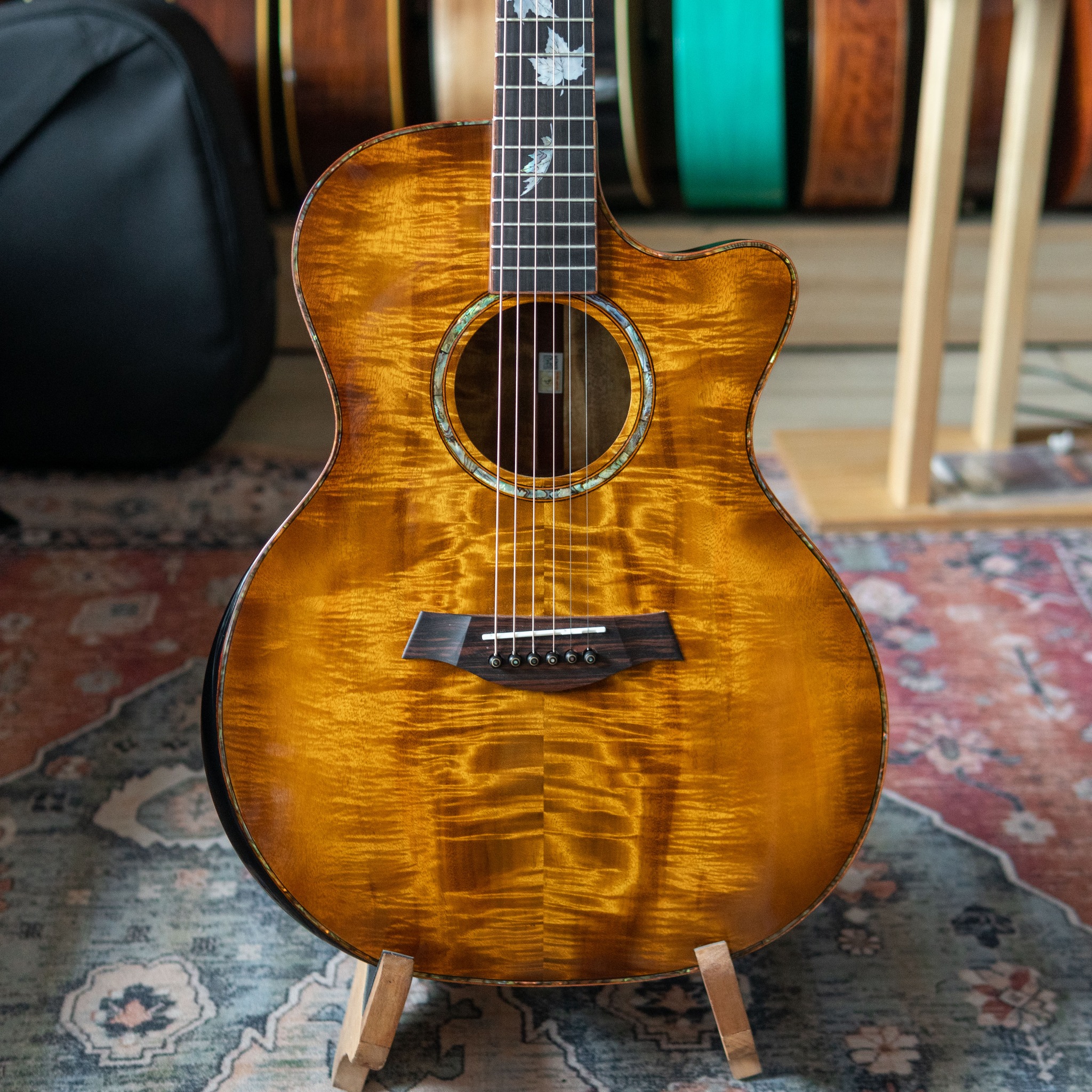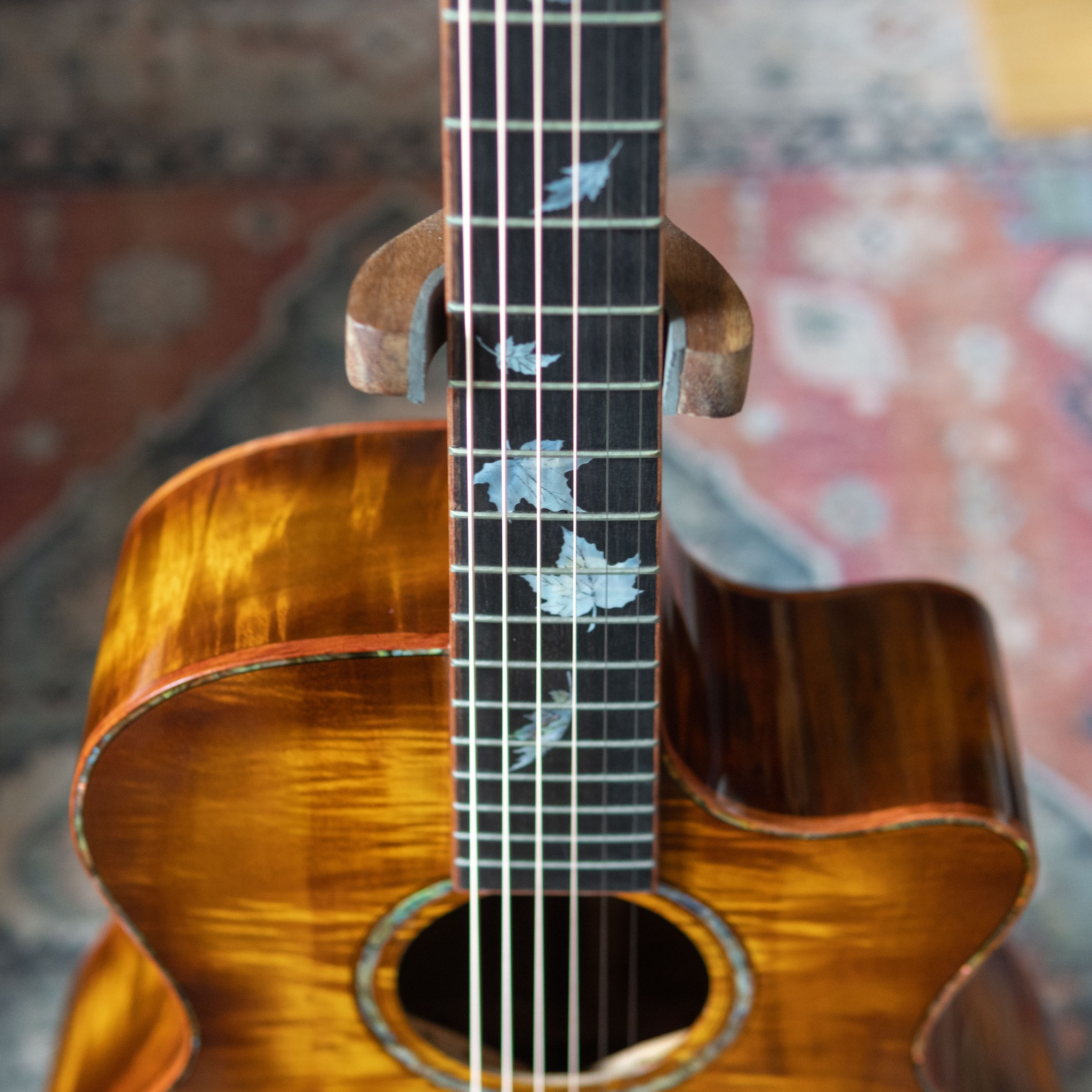 – Mặt phím Ebony nổi bật với những inlays được khảm trai thủ công tinh tế, tái hiện hình ảnh những chiếc lá thu nhẹ rơi với sắc ánh xà cừ chuyển màu tinh tế theo từng góc ánh sáng.
