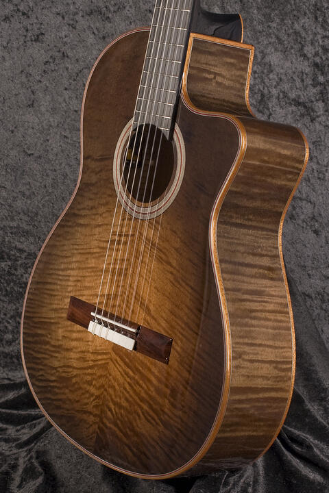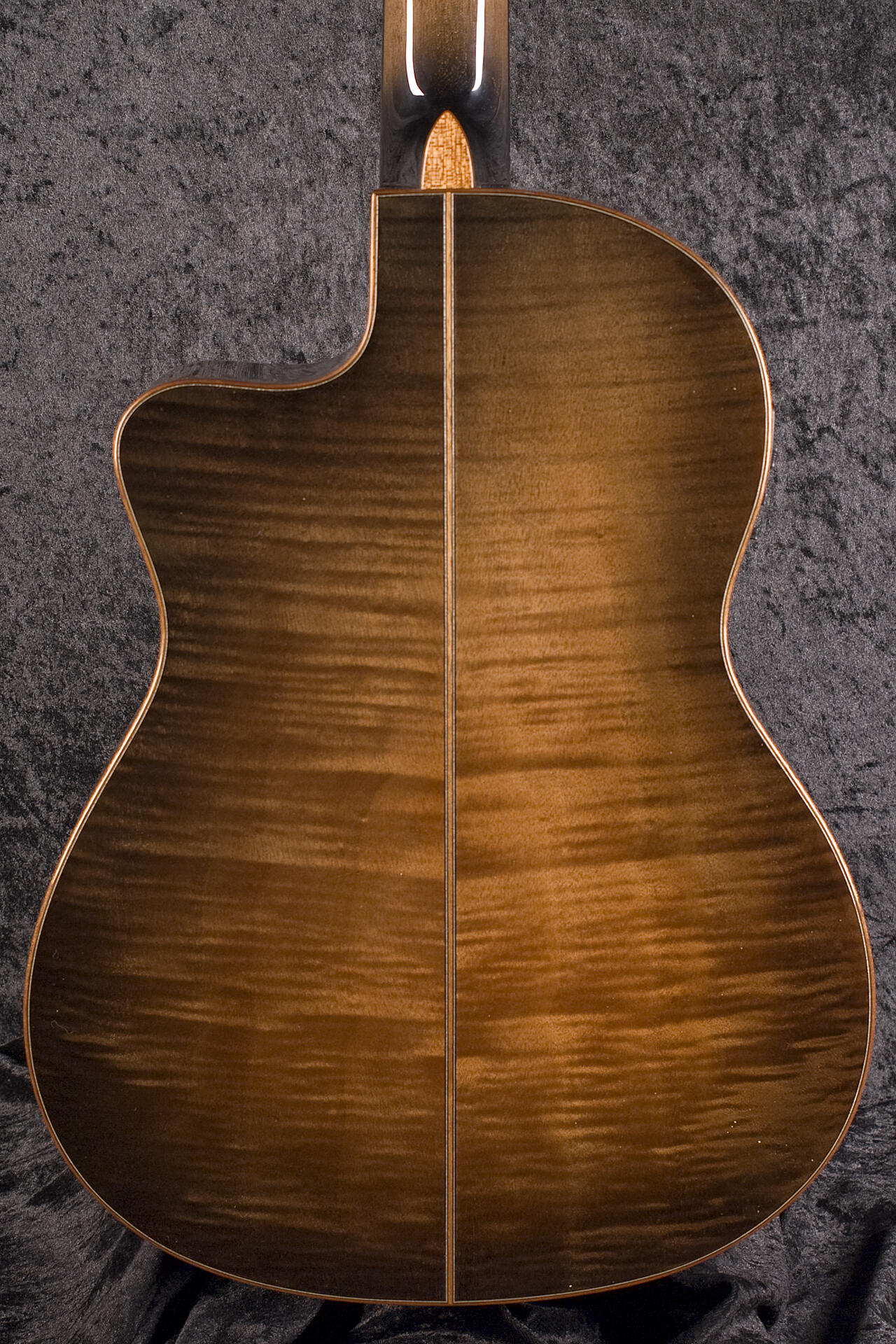 Một lớp veneer gỗ quý hiếm siêu mỏng được phủ lên mặt đàn gỗ Vân Sam nguyên khối, mang đến vẻ ngoài ấn tượng mà không làm giảm chất lượng âm thanh. Fusion 12 Cinnamon Burst nổi bật với lưng và hông đàn bằng gỗ Flamed Okoume, được bổ sung bởi lớp phủ veneer okume đồng bộ.