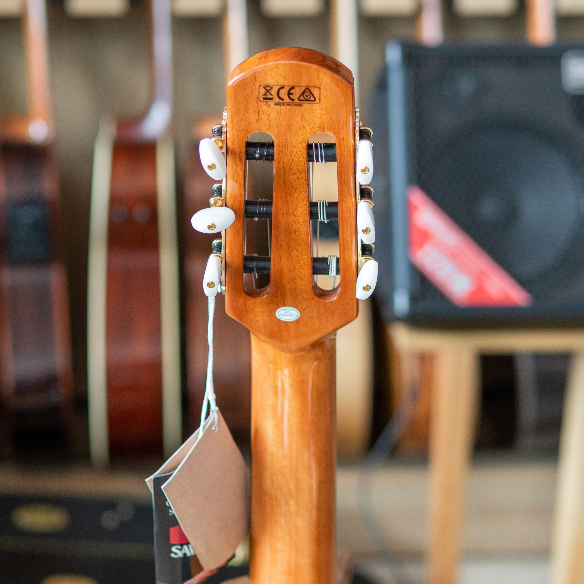 – Mặt đàn: gỗ Solid Spruce được veneer một lớp gỗ maple với vân gỗ đẹp mắt. Gỗ spruce phản hồi âm thanh nhanh, cho chất âm vang, sáng, âm sắc treble bass chi tiết.